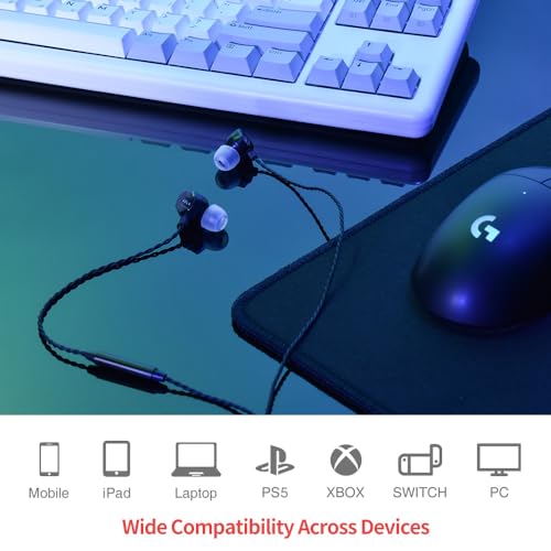 Ergonomic Design: Experience hours of comfortable gaming with the ergonomically crafted earbuds. The soft silicone ear tips provide a secure fit, eliminating any discomfort or distractions.